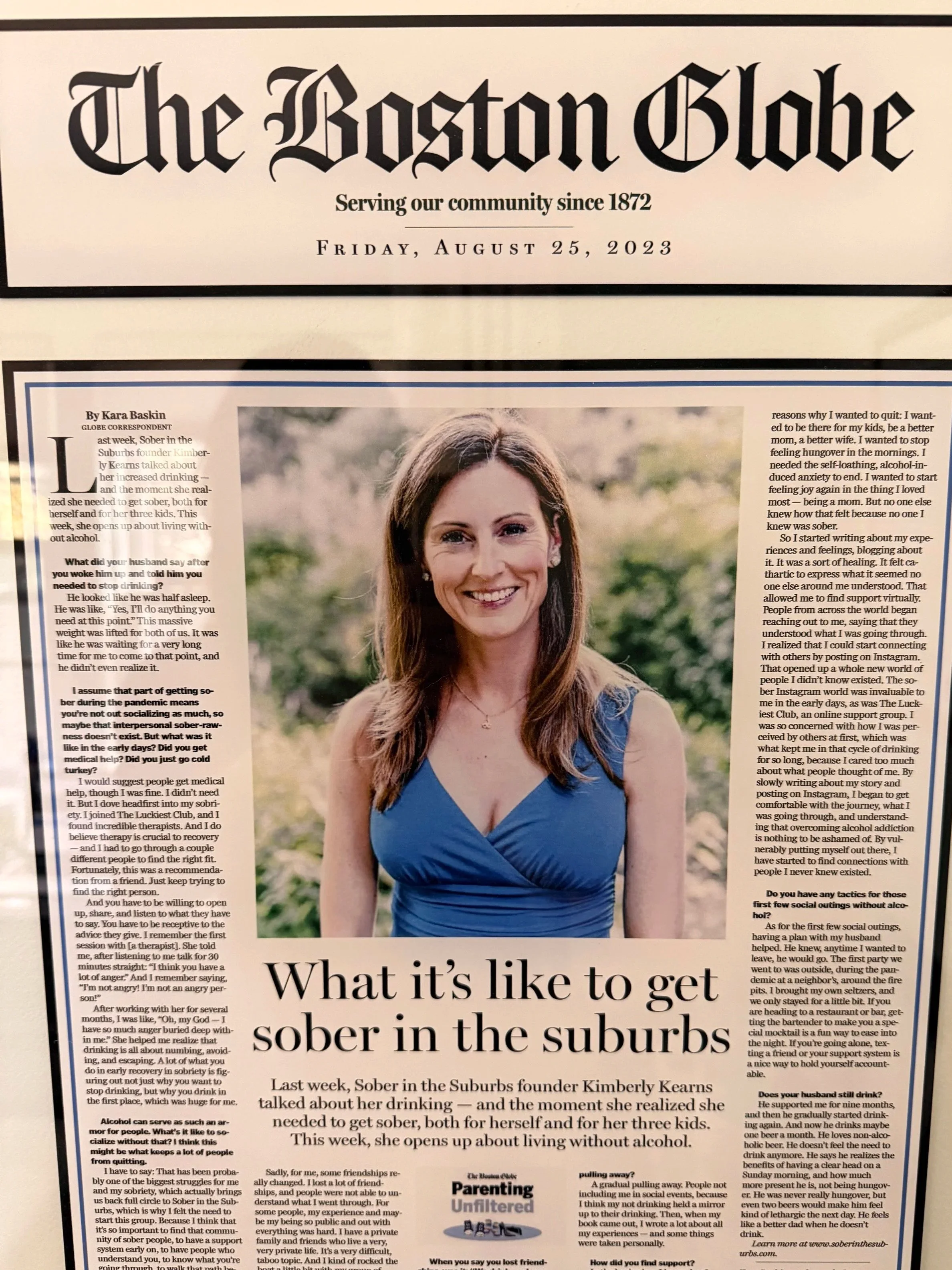 “Needham’s Kimberly Kearns had three kids, a supportive husband and a seemingly idyllic life. But she couldn’t stop drinking. Now she’s making it less lonely for others to put down the bottle.”